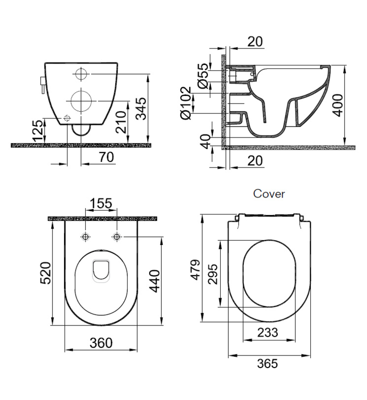 - Model: ZERO Anthrazit spülrandloses Hänge Dusch/Taharet WC