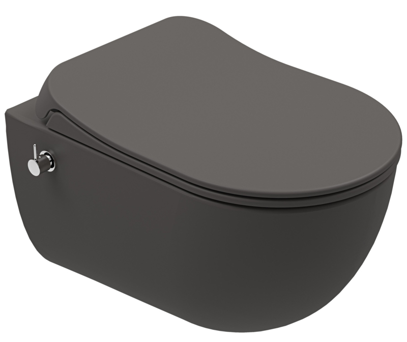 Spülrandloses Hänge Dusch WC KALE ZERO EASY matt Anthrazit mit Bidet (Taharet/Taharat) Funktion integr. Hebelmischer Armatur (Kalt & Warmwasser).