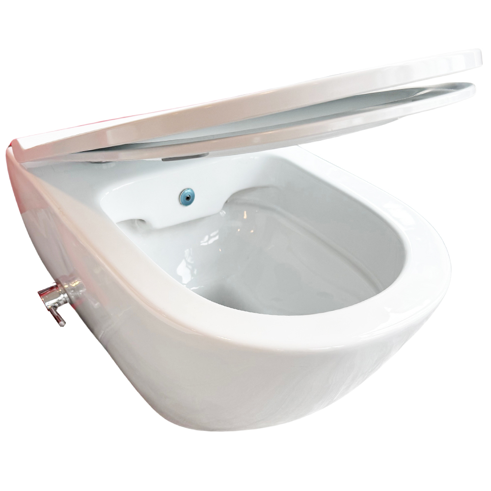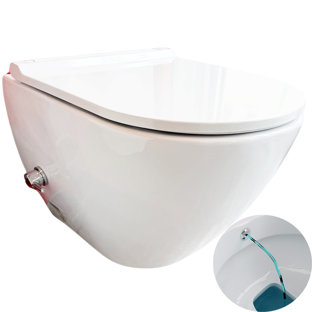 Hänge Dusch WC Bien NICOLE Easy (Randloses und Antibakteriell) mit Bidet (Taharet/Taharat) Funktion integr. Kaltwasser Armatur und abnehmbar Absenkautomatik Deckel.
